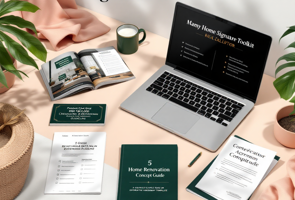 Kit lengkap mula renovasi. Anda akan dapat eBook panduan renovasi, Kalkulator kos renovasi, Kontraktor agreement template, dan Renovation concept design.